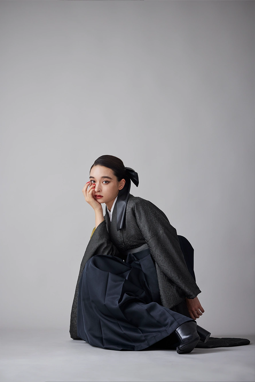 黒の袴を合わせてクールに。