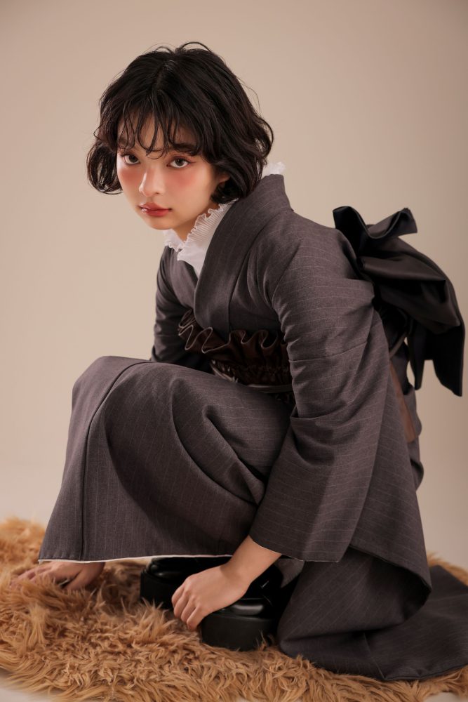 「振袖をワンピースのように着こなしたい!」という願いを叶えるのが、ブラウンチェック振袖です。