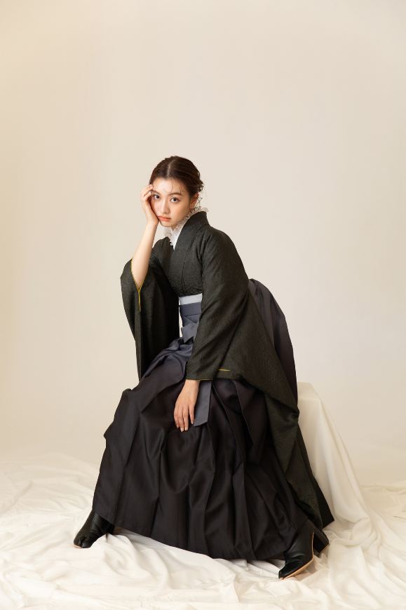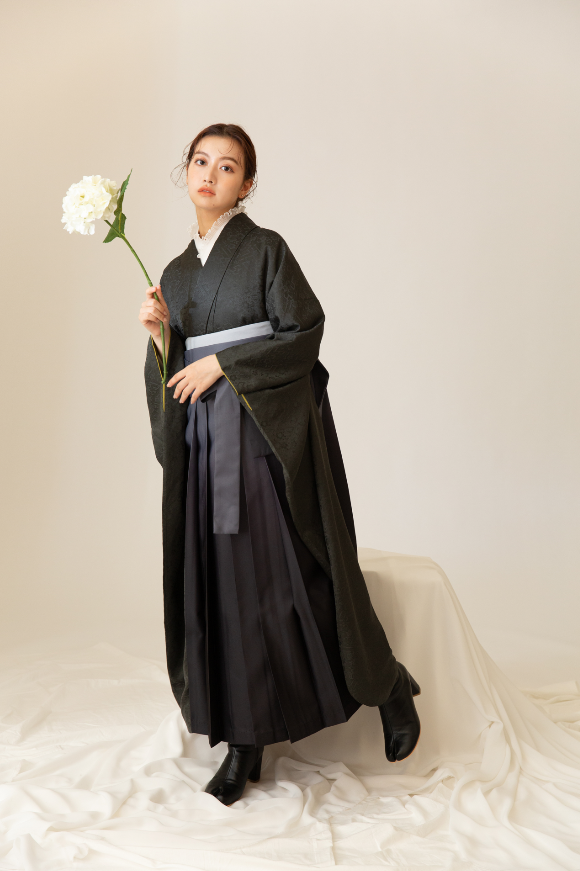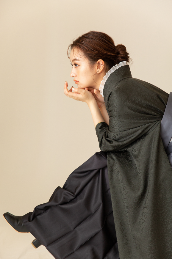 振袖や卒業袴だとあまり見かけないブラックコーデですが、よりファッショナブルで大胆なポージングもキマります✨