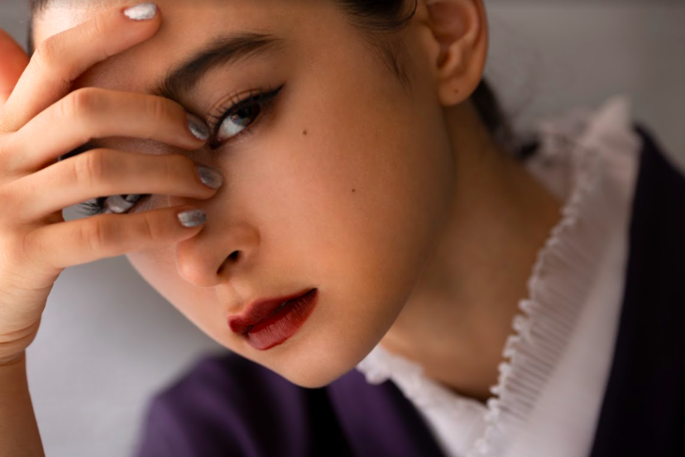 カメラ目線や少し目線をずらしたり、手を頬につけたり、口元に持ってきたりするのも素敵です。