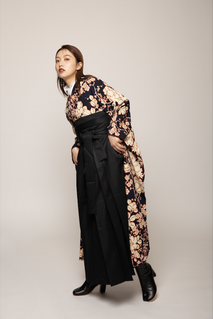 もちろんショールやおかばんを使わずに袴を広げたり、お袖を持ってデザインを見せたり、足を曲げてみたりなどレパートリーは沢山あります。