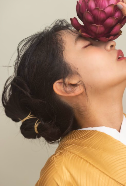 ショールやおかばんなど定番ポーズではなくおしゃれに撮りたい方にお花はおすすめです。