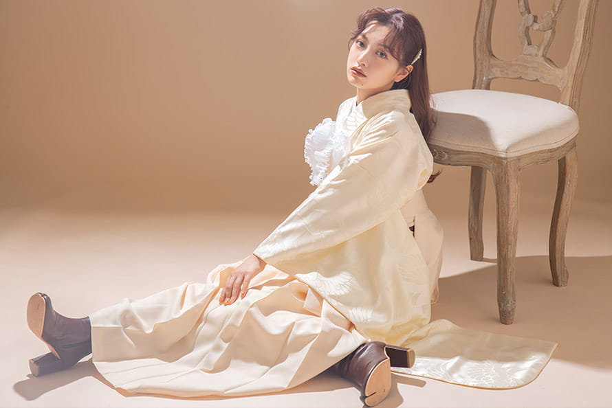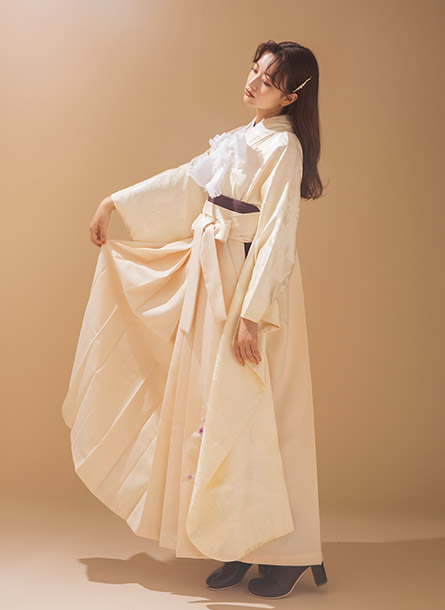 振袖と袴はクリームカラーで統一し、