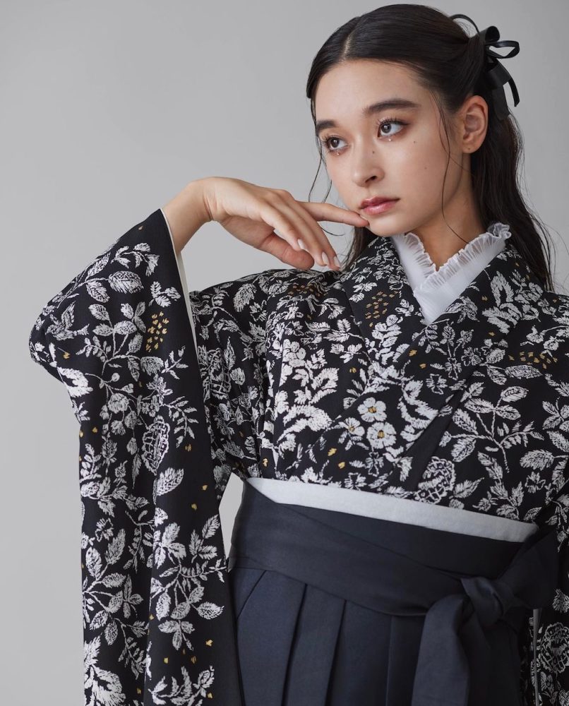 ブラックといっても、袴と全く一緒の色のブラック振袖もあれば、比べると全然違う色味の振袖まであります。