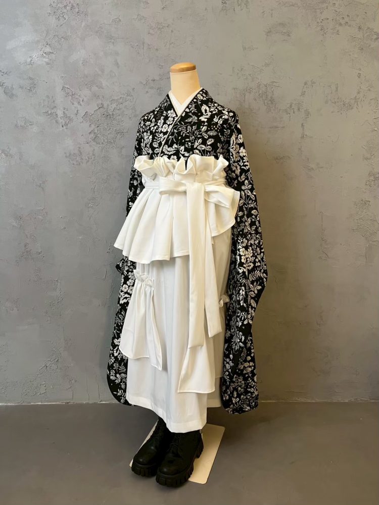入荷当初から大人気のオリジナル衣装。 デザインから制作、撮影まですべてaimmeが手掛けた真新しい袴となっております。 aimmeならではの卒業袴スタイリングで、インパクトある唯一無二なコーディネートに。