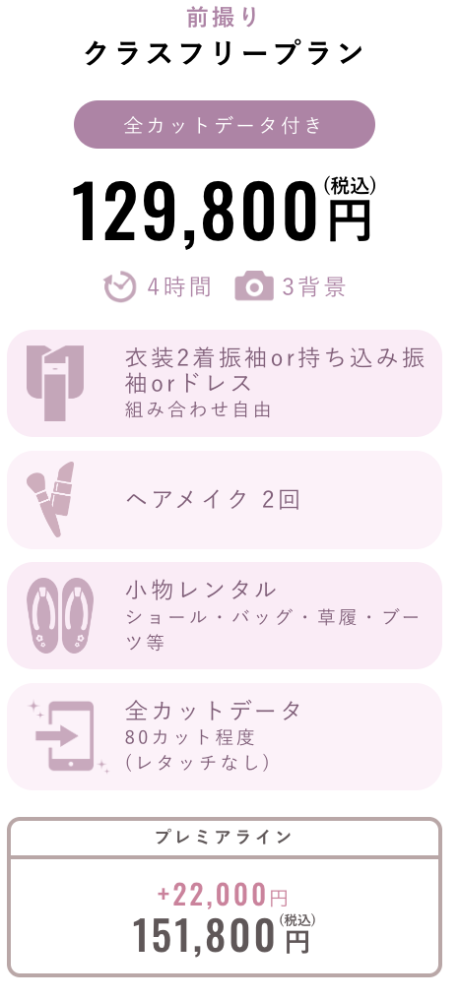 ※上がレンタル込みのプラン、下は前撮りのみのプラン