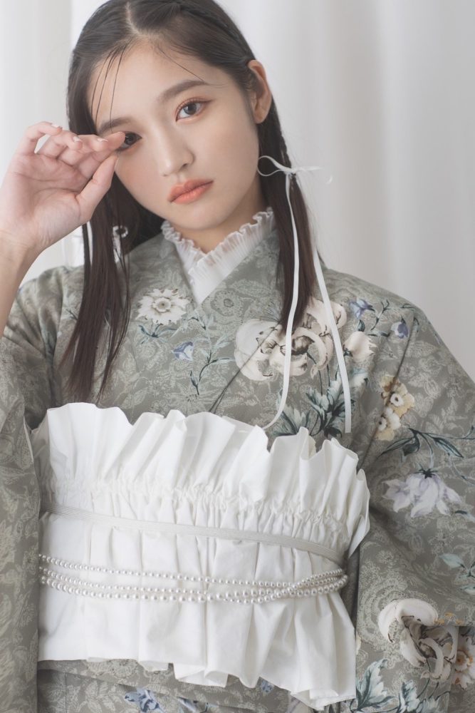 帯や髪飾りの色でガラッとイメージが変わるのも淡色のいいところです。