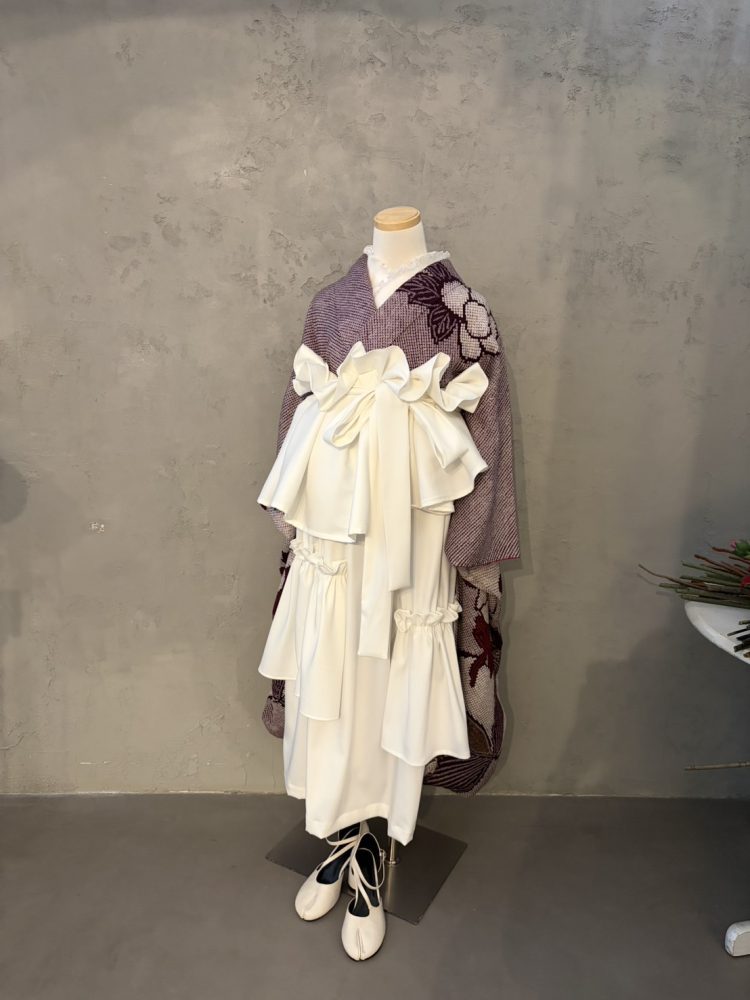 そこにaimmeオリジナル、ホワイトのティアード袴を合わせることによって