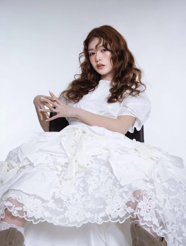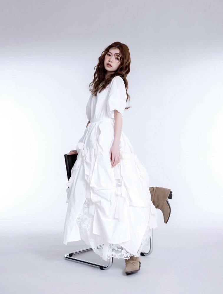 ハタチのピュアな透明感を引き立てる、遊び心たっぷりの一着です。