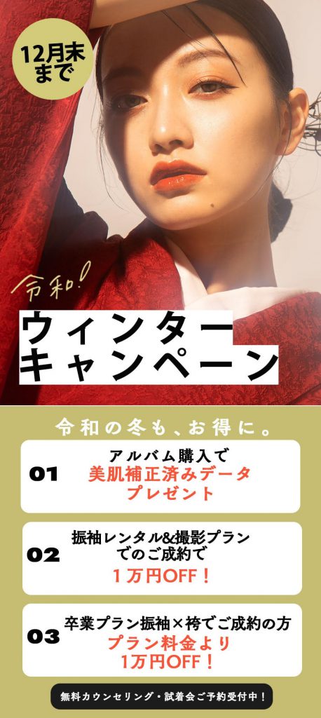 振袖レンタル&撮影プランご成約で合計金額から1万OFF!