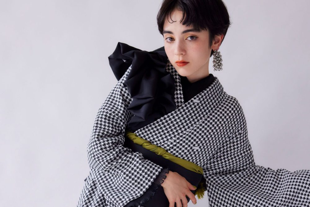 全体に広がる千鳥格子柄は、洋服のようなモード感を演出し、スタイリッシュで都会的な印象に。