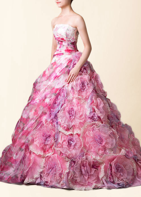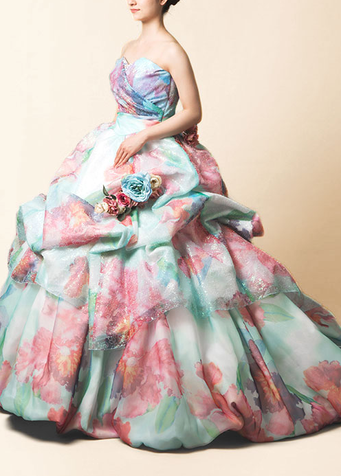 お花の柄がたくさん入ったドレスや最新のシンプルめなピンクのドレスまで幅広くご用意しております!