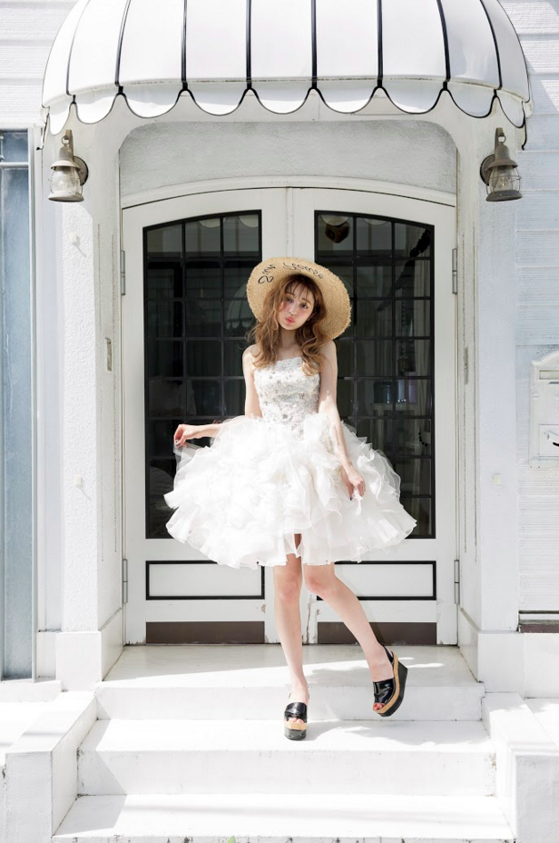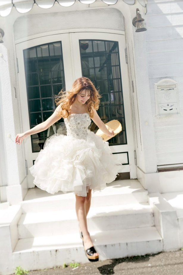 ウエディングドレスに自分なりのアレンジを加えてカジュアルなコーディネートにするのが “ハタチ” ならでは!