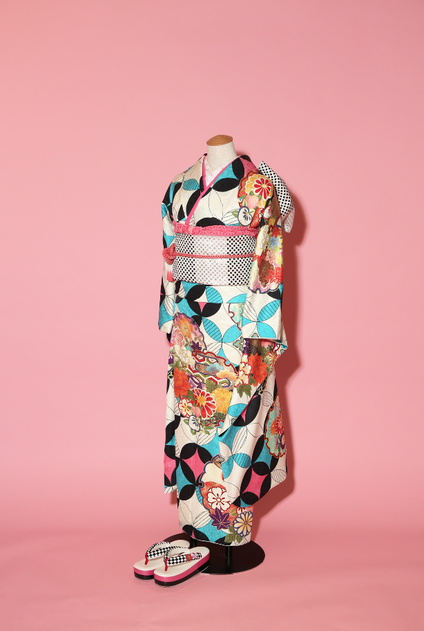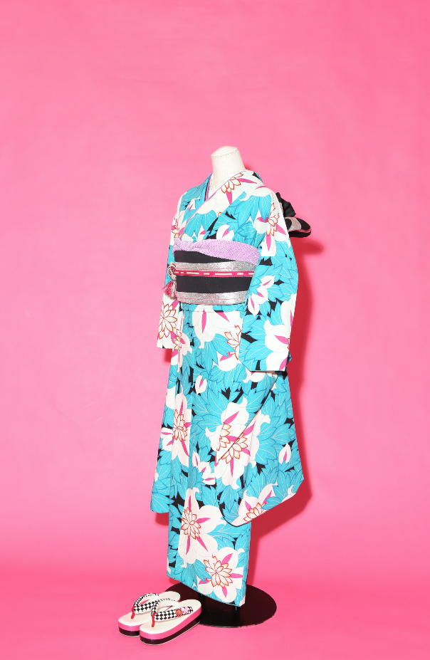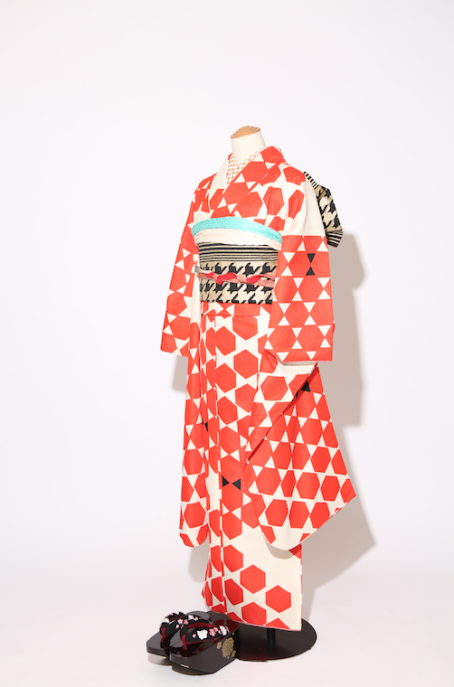 帯はレトロに。POPさを出すために小物でアレンジ!