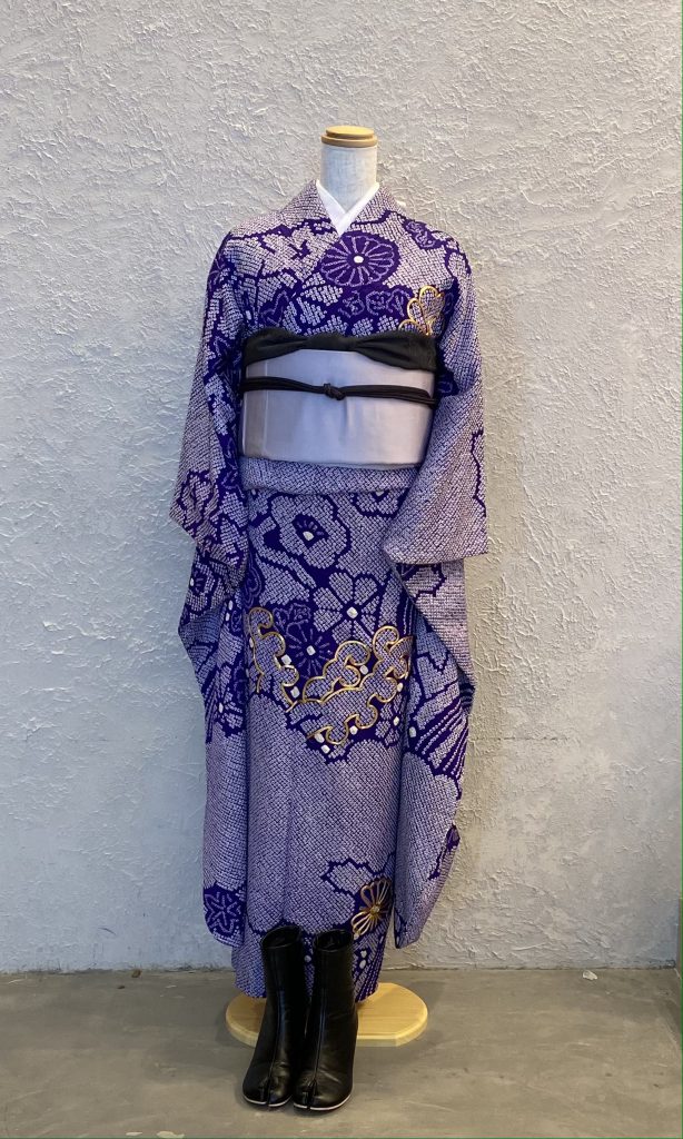 淡いパープルの帯で柔らかさを出すのもおすすめコーデ!
