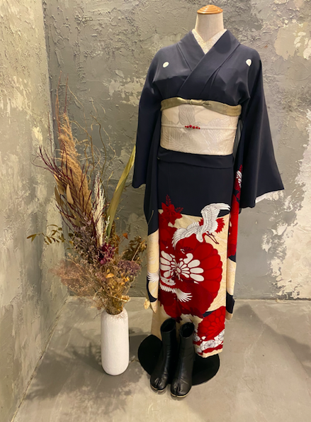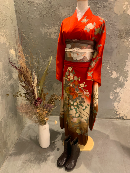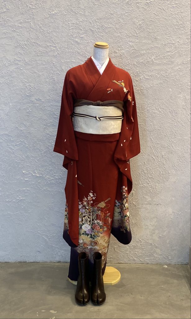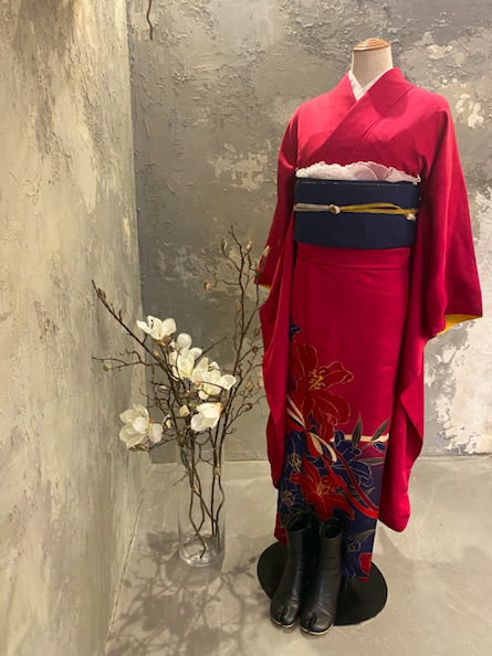 明るめの赤で黒の帯でしめるのもかっこよく着こなしていただけます!