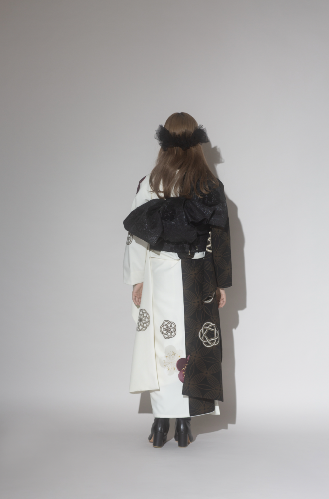 ホワイトとブラックのバイカラーな振袖