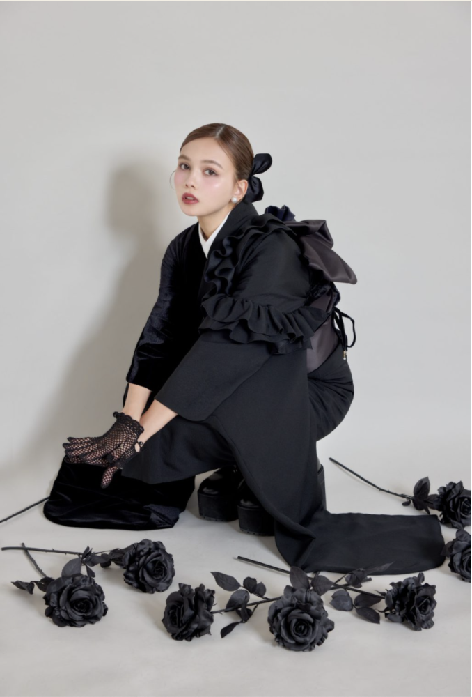 ポイント: 黒一色の衣装だからこそ、リップの質感やアイラインの角度で「自分らしさ」というオリジナリティを表現します。