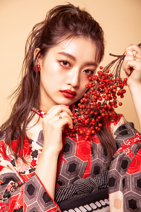 make:じゅわっとした抜け感とそれぞれの衣装に合わせた甘口メイクでおしゃれ顔に。