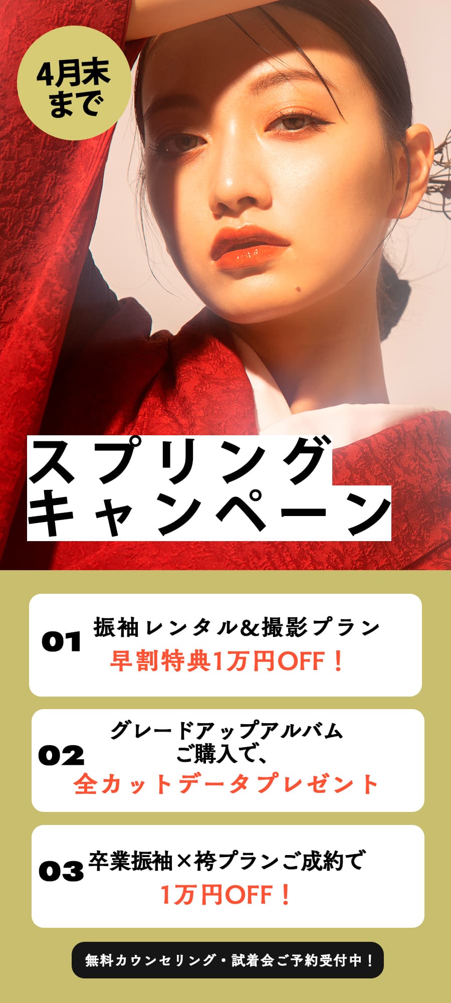振袖レンタル&撮影プランご成約で合計金額から1万OFF!