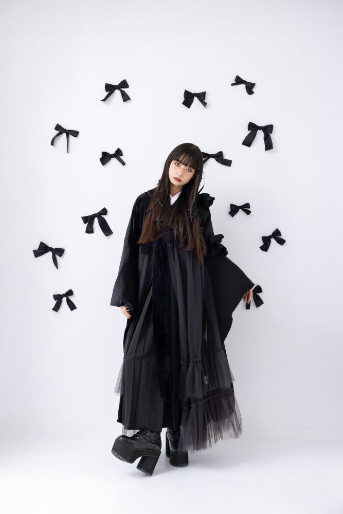 柔らかいふんわりとした質感でできているチュール袴は、通常他の袴の上から着用いただきます。