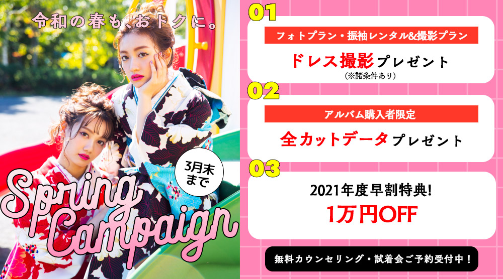 振袖レンタル&撮影プランご成約で合計金額から1万OFF!