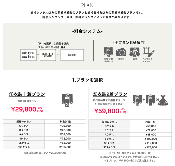 ❶ フォトプラン・振袖レンタル&撮影プランご成約で
