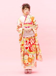 白の背景はお振袖の柄がしっかりと映えるのがとっても魅力的となっております!