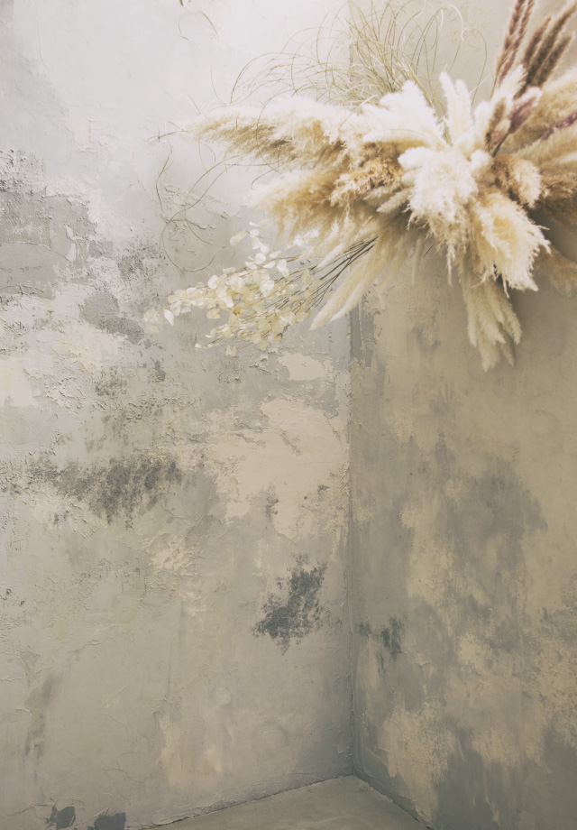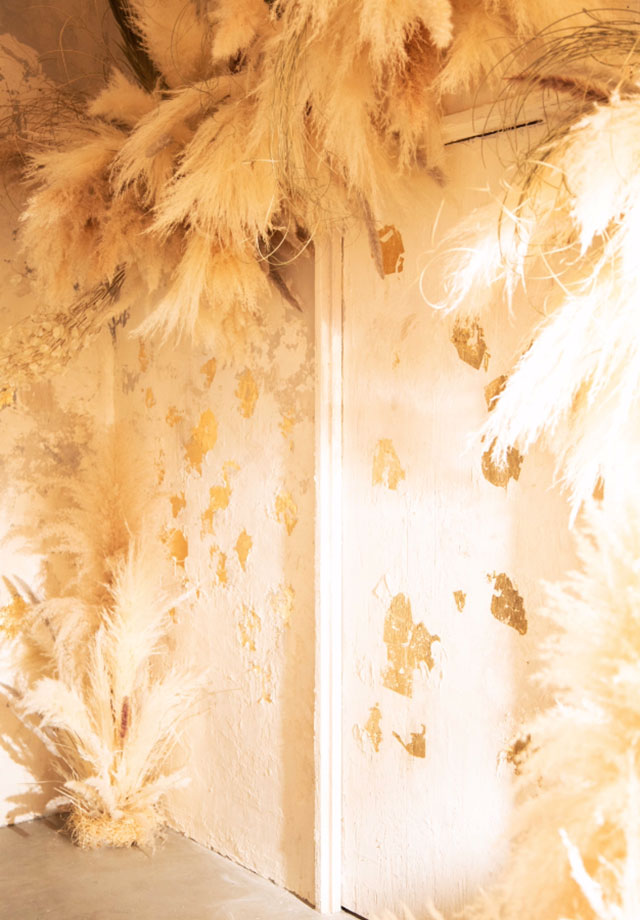 手前にパンパスグラスを入れることによってボカシが効いてより柔らかい印象にしてくれます。