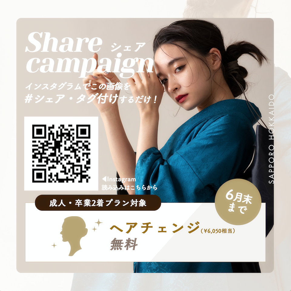 Instagramに上記の画像をストーリーでシェア、又は通常投稿でタグ付けをしていただくとヘアチェンジをプレゼント!!