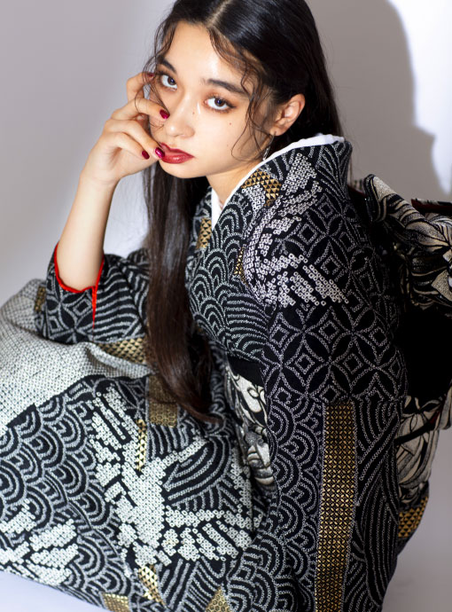 黒ベースの古典的なお振袖。