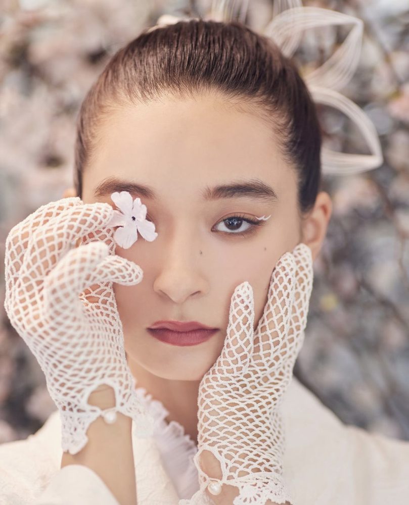 頬杖をついたポーズは小顔効果に。花びらを一枚手に取って、目元を隠すことで雑誌の表紙のような美しい一枚が撮影出来ます。