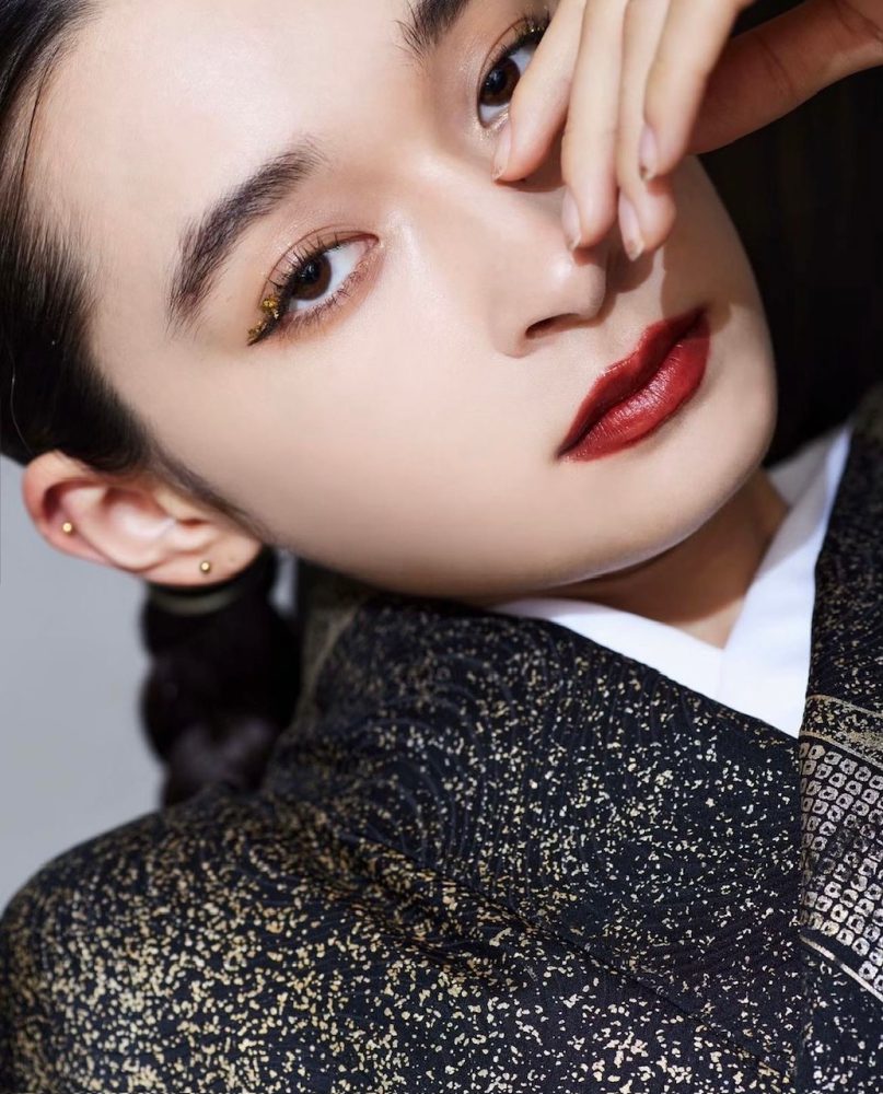 アイシャドウのキラキラ感や、ダブルライン、ネイル、グローブなど、こだわった部分をしっかり見せつつ、お顔が盛れるポージングを。