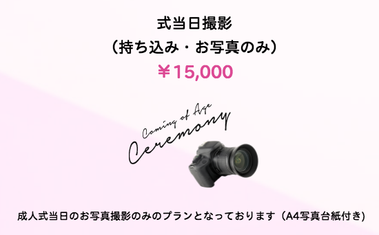 一生に一度の成人式。携帯の写メも良いけど、せっかくの晴れ姿をきちんとお写真で残しませんか?