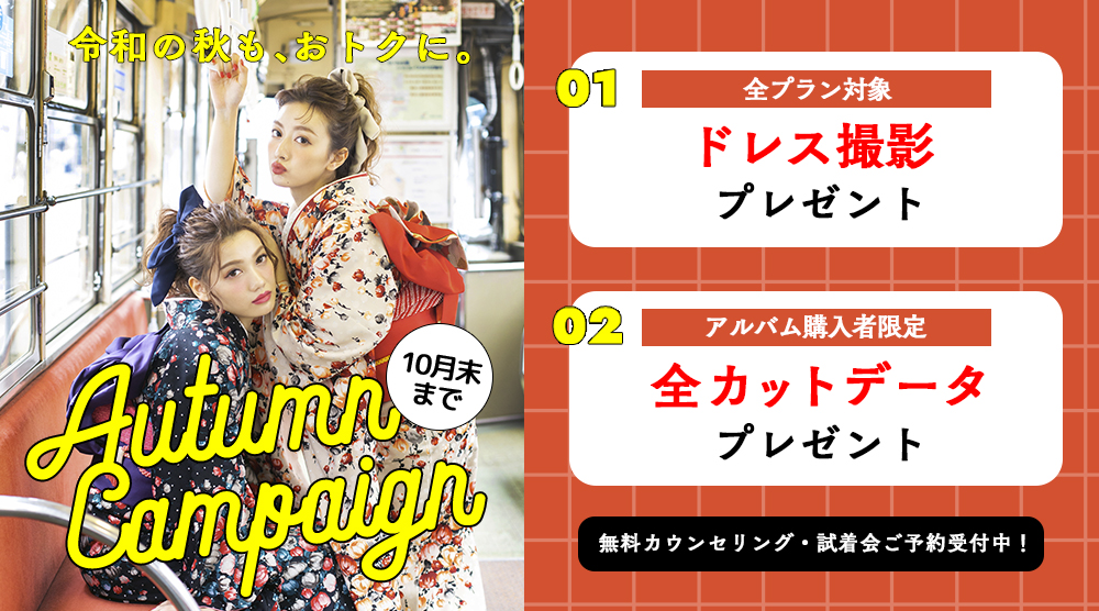月末までのご契約で通常¥40,000のドレス撮影をもれなくプレゼントしちゃいます!