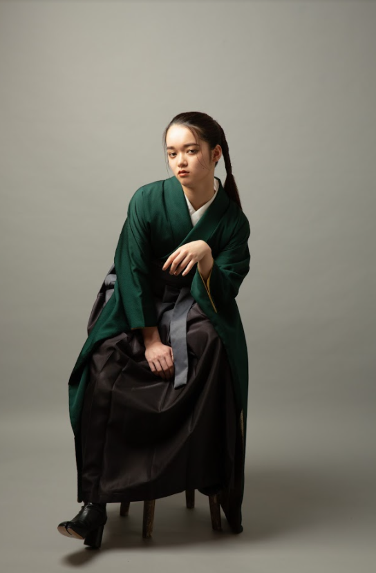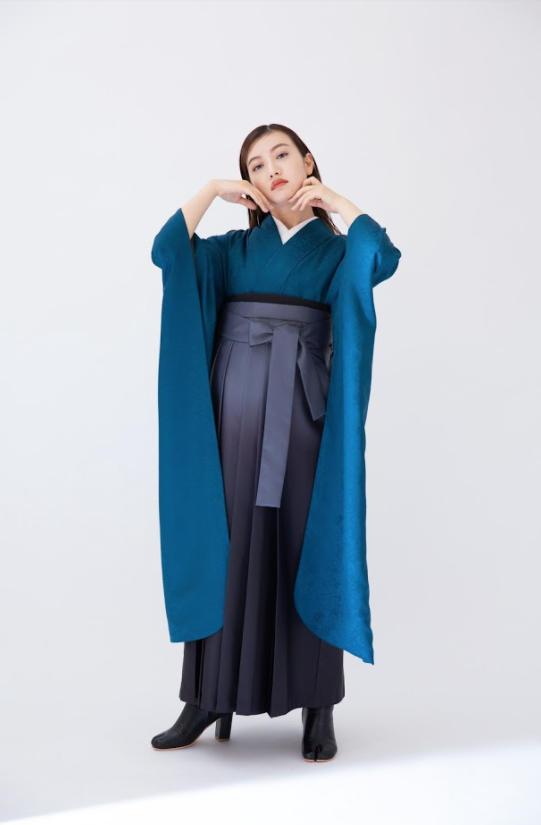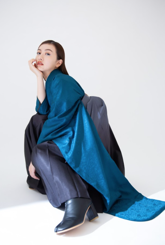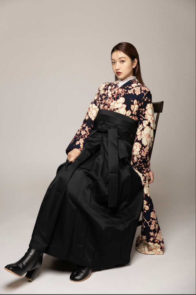 1点物のヴィンテージ振袖に袴を合わせたオリジナルスタイル。