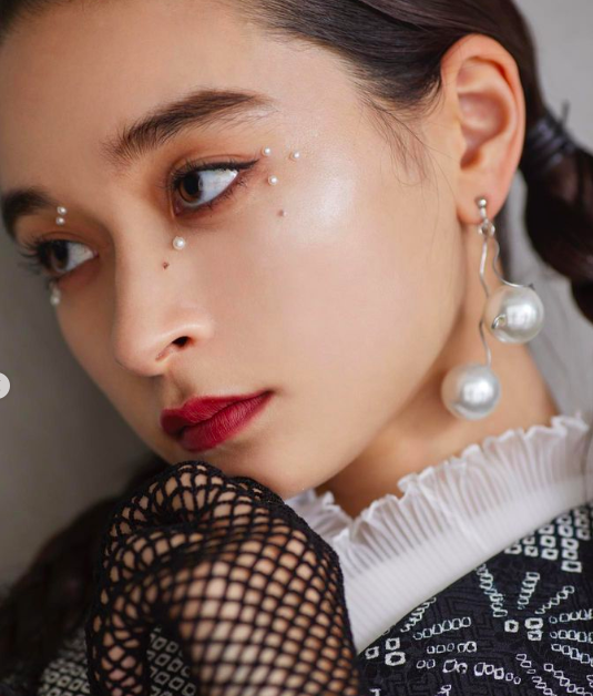 シンプルな色使いのメイクだからこそパールが映える引き算メイクです。