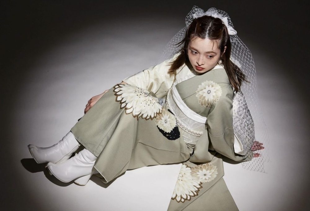 ファッションのように振袖と組み合わせることで個性派ガーリーコーディネートに。