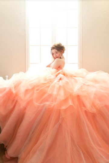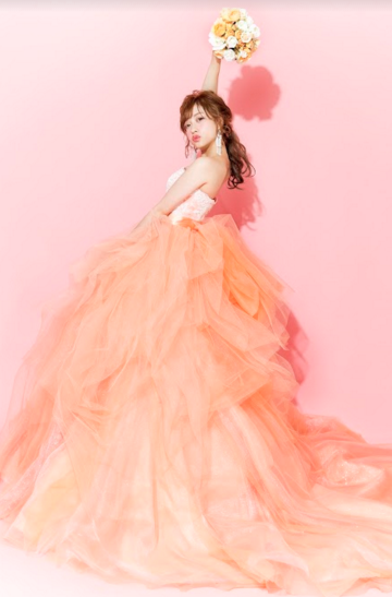 鮮やかなオレンジのドレスはハタチらしい元気いっぱいなドレスです。