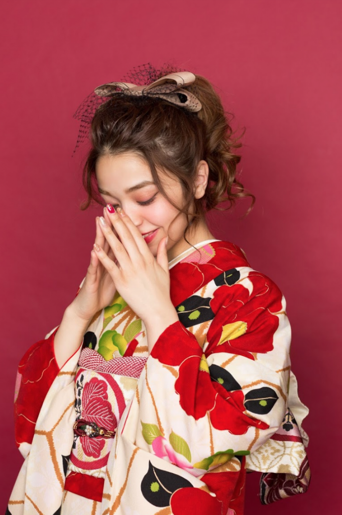 aimの可愛い振袖1着をレンタルし、着付け・ヘアセットが含まれたプラン!