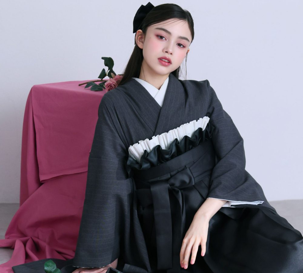 あえて袴と同じようなカラーで帯の存在感を落ち着かせたり、