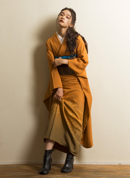 濁りのあるマスタードカラーのヴィンテージ振袖。