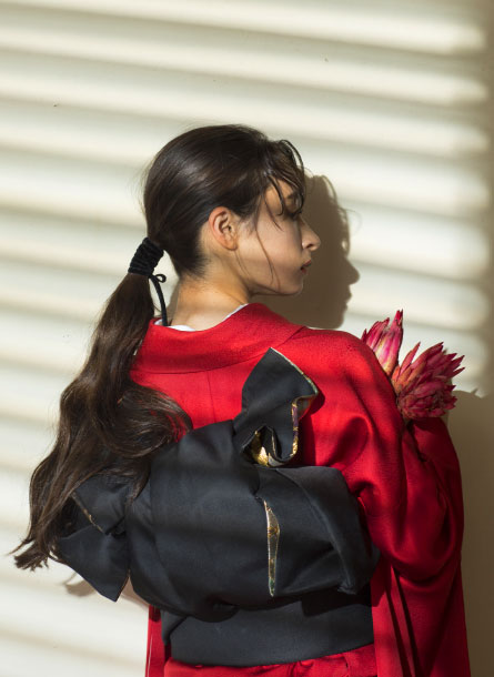 黒いヴィンテージ振袖も大人かっこいいスタイルだけじゃなく、