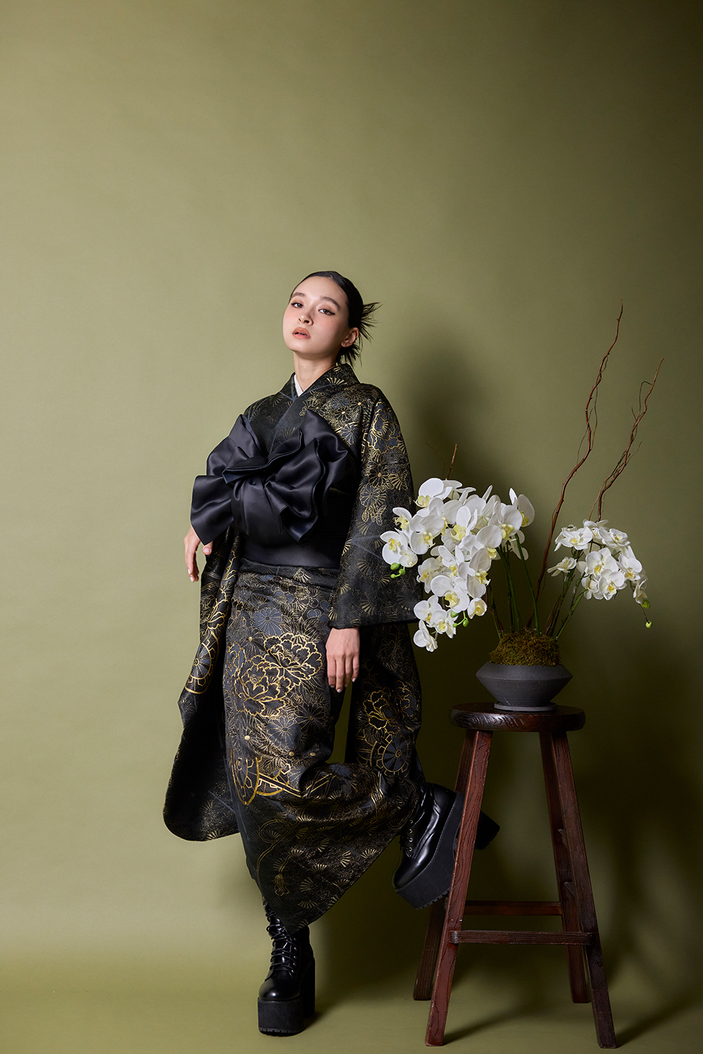 こだわり抜いた背景セット: 従来の「写真館」のイメージを覆す、洗練された空間での撮影。