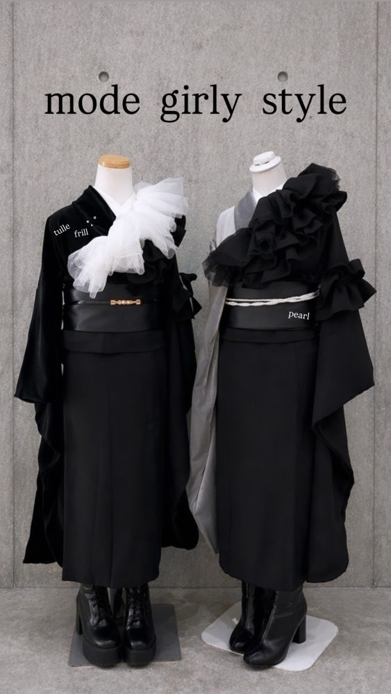 当店が手がけるオリジナル振袖の”バイカラーフリル振袖”より