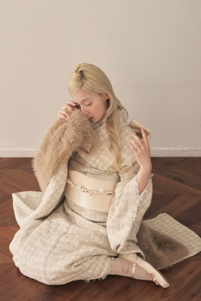 お次は、今年aimme原宿店に仲間入りしたツイード振袖のコーディネートをご紹介します!