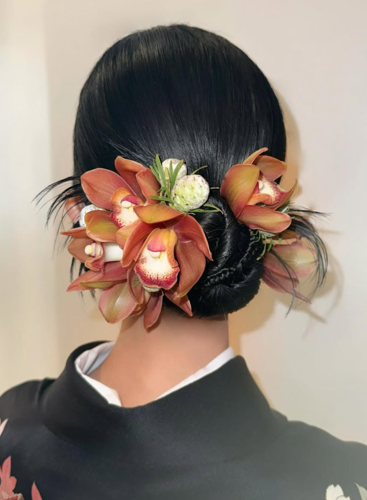 こんにちは! aimme東京原宿店です!今回はお花を使用したお客様ヘアをご紹介させていただきます。 成人式、卒業式を控えている方ぜひご参考くださいませ!