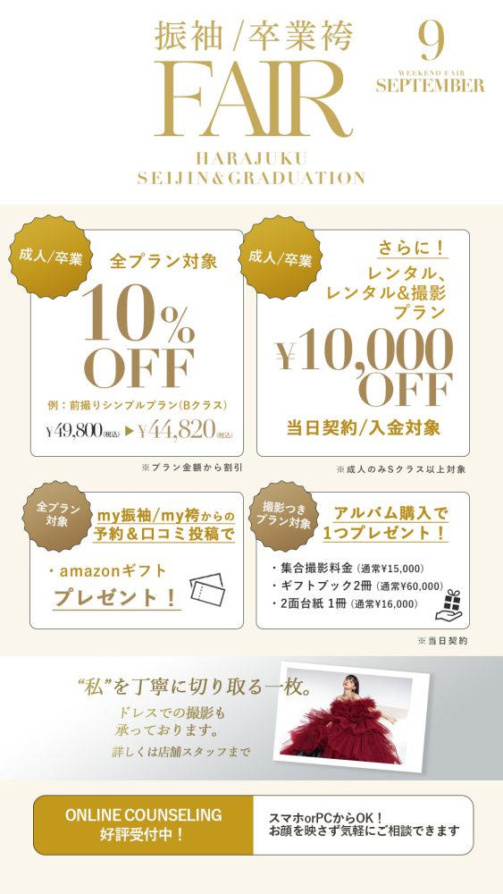 そんなaimme東京原宿店が今回限定開催する振袖・卒業袴フェアに注目すべき理由をCHECK!