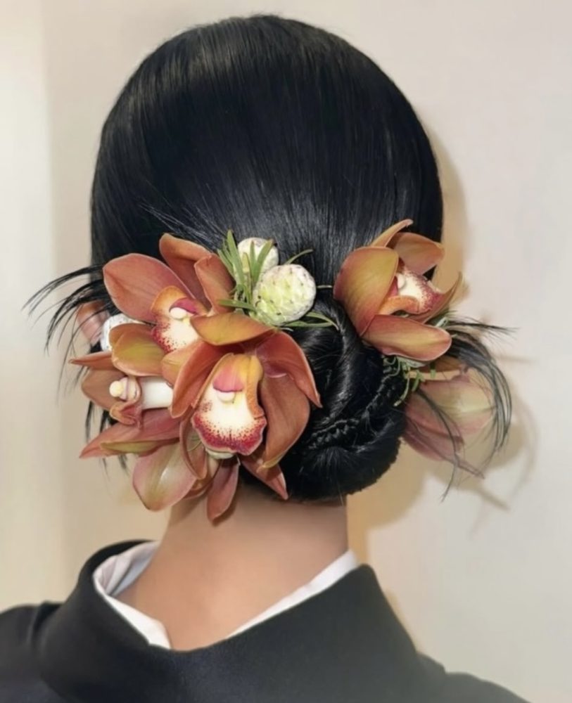 こんにちは! aimme東京原宿店です!今回はお花を使用したお客様ヘアをご紹介させていただきます。 成人式、卒業式を控えている方ぜひご参考くださいませ!