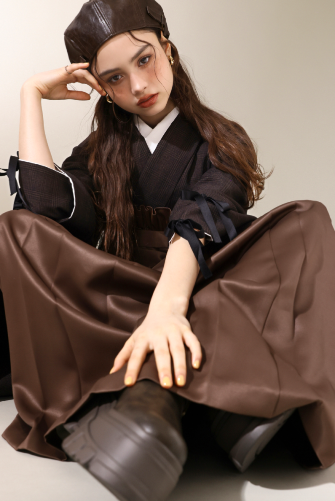 光沢感のあるメタリックカラー袴は、シルエットも特徴的なので目を惹くこと間違いなし!✨